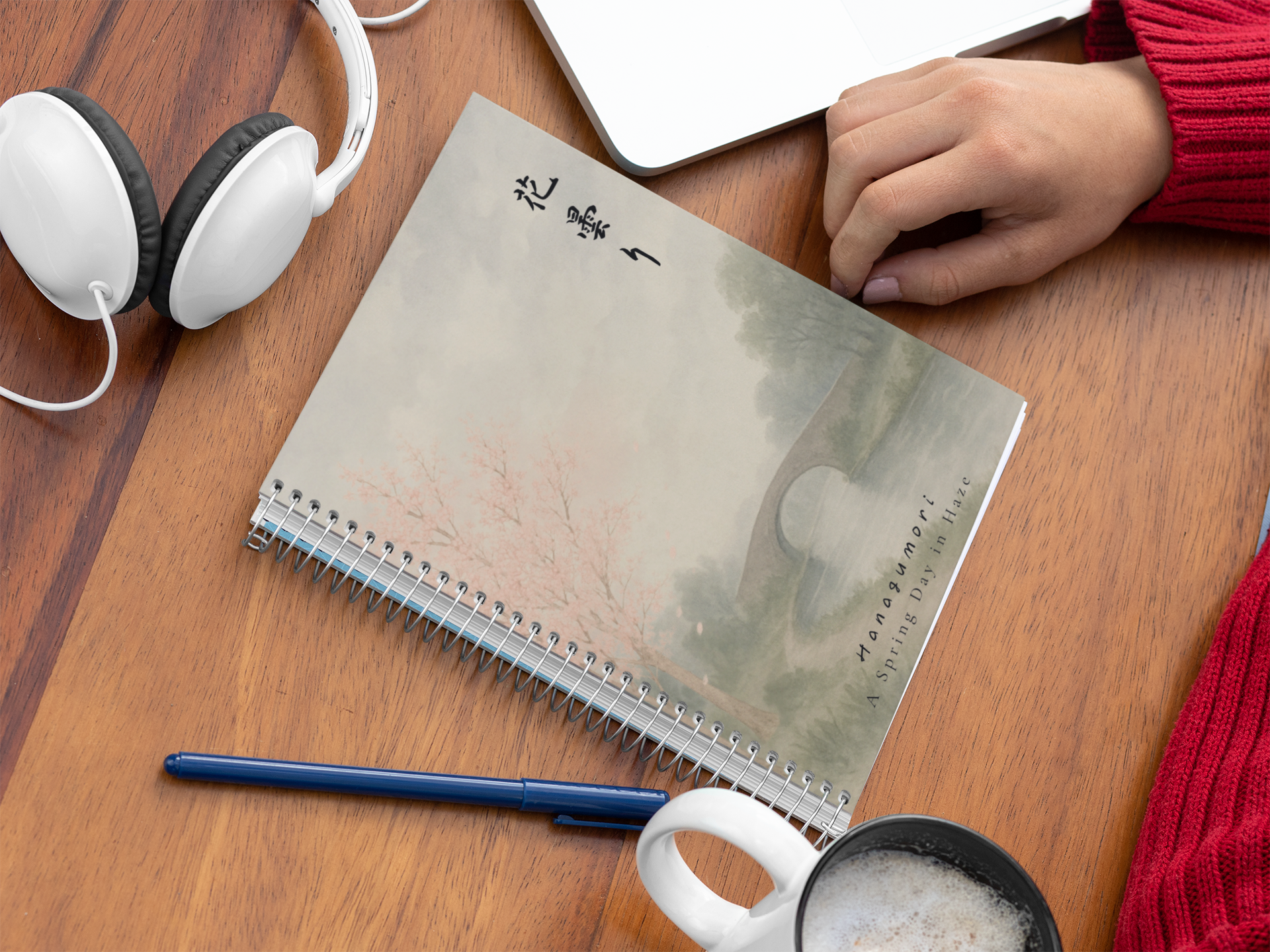 This notebook captures the gentle melancholy of a spring day wrapped in clouds — a fleeting moment when cherry blossoms bloom beneath a pale sky.