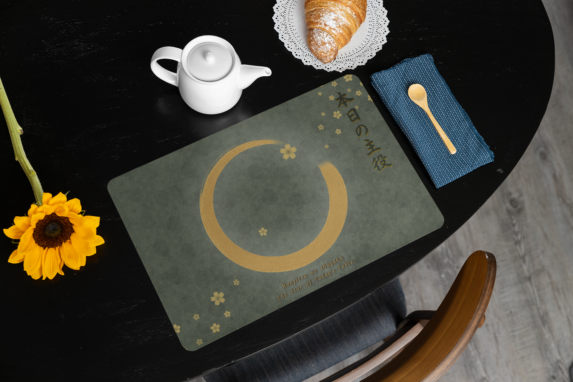 This Japanese-style placemat is designed around the phrase 「本日の主役」— meaning “The star of today.”