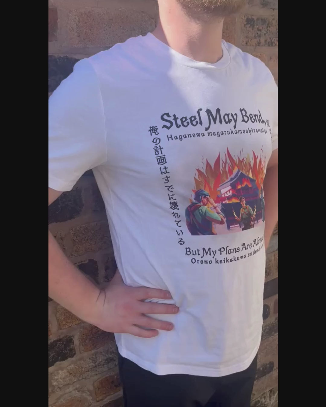 • Japanese phrase: 鋼は曲がるかもしれないが、俺の計画はすでに壊れている